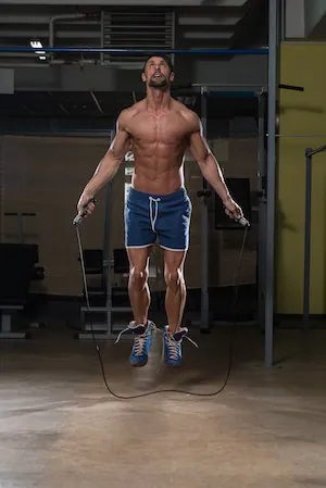This exercise involves quite a bit of hand-eye coordination because you have to spin the rope with your hands and you have to keep track of the rope with your eyes so that you know when to jump, not to mention having the right timing to make precise jumps.